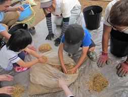 ![]() もみがらを詰めて |